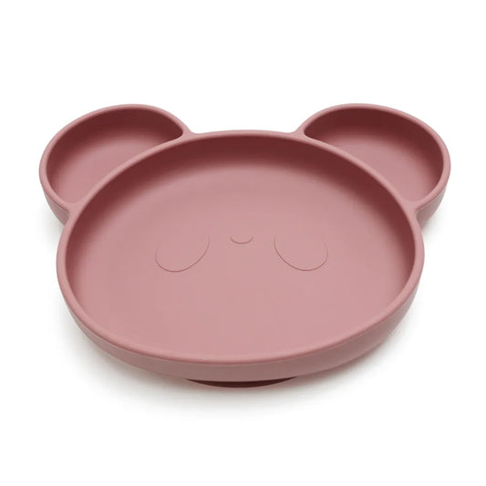 Assiette BĂ©bĂ© en Silicone Forme Panda Rose â Ventouse AntidĂ©rapante