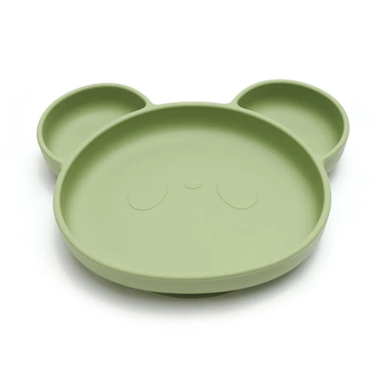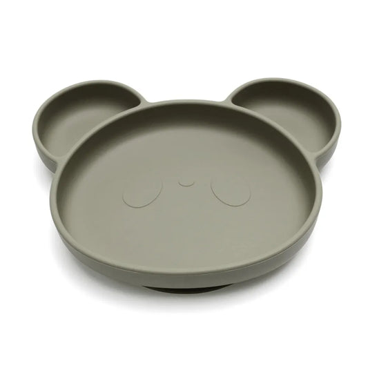 Assiette BĂ©bĂ© en Silicone Forme Panda Vert Olive â Vaisselle SĂ©curisĂ©e