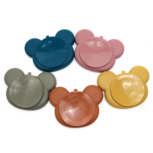 Assiette BĂ©bĂ© Ventouse en Silicone Bleu Marine â Forme Panda