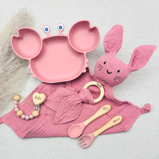 Coffret Repas Bebe Crabe Personnalise – Assiette, Bol, Jouet, Couverts