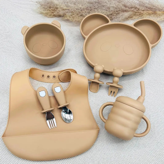 Vaisselle bébé en silicone sans BPA avec assiette | Set repas bébé ergonomique en silicone