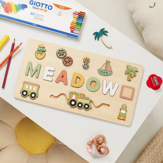 Puzzle en Bois pour Bébé - Prénom Personnalisé & Jouet Montessori Véhicules