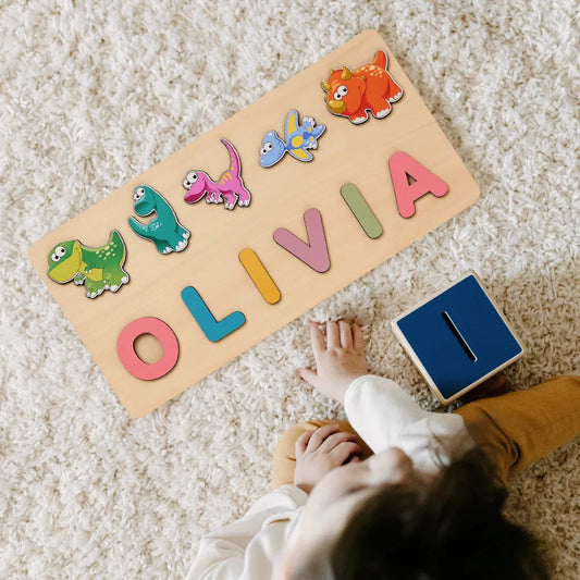 puzzle personnalisé pour bébé - Prénom en Bois & Jouet Montessori Dinosaures