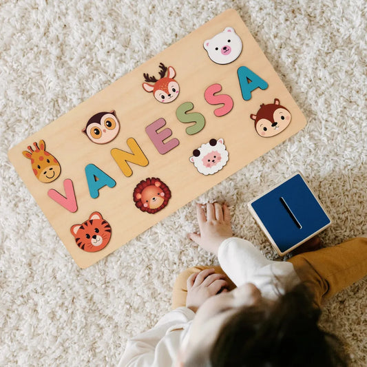 Puzzle Bébé en Bois - Prénom Personnalisé & Jouet Montessori Savane